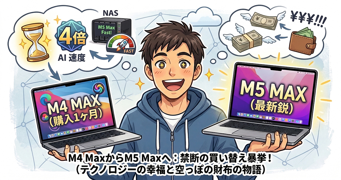 それまで相棒だったM1 Max MacBook Proも十分名機でしたが、最新のAI処理には少し力不足を感じ始めていた僕は、意を決して初売りでM4 Maxをポチったのです。